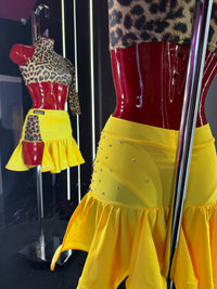 L'abito "Animal Dance" è l'ideale per ballare i balli latino americani in classe D. Il design animalier e il vivace colore giallo lo rendono unico, mentre i dettagli in strass aggiungono una luminosità scintillante al tuo look. Scegli questo abito e balla con stile!
