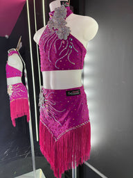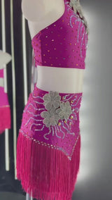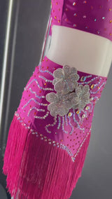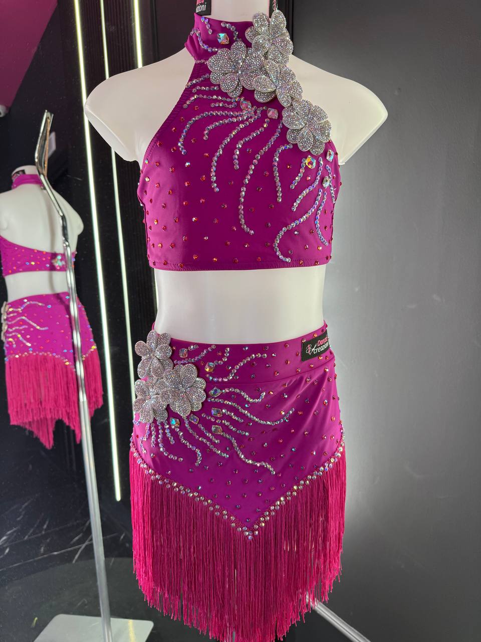 Questo abito per balli latino americani di classe A è perfetto per esibizioni di alto livello. Con le sue frange svolazzanti e i fiori strassati, attirerà sicuramente l'attenzione della folla. Indossalo con fiducia e lascia che i tuoi movimenti fluiscano, grazie al design pensato per esaltare le tue performance.