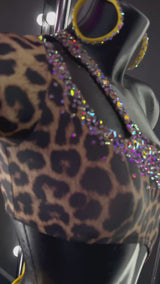 Questo abito di classe A per balli latino americani è il massimo della raffinatezza. Realizzato con tessuto animalier e dettagli in strass, ti farà risplendere sul palco. Aggiungi un tocco di glamour alle tue performance con Wild Glow.